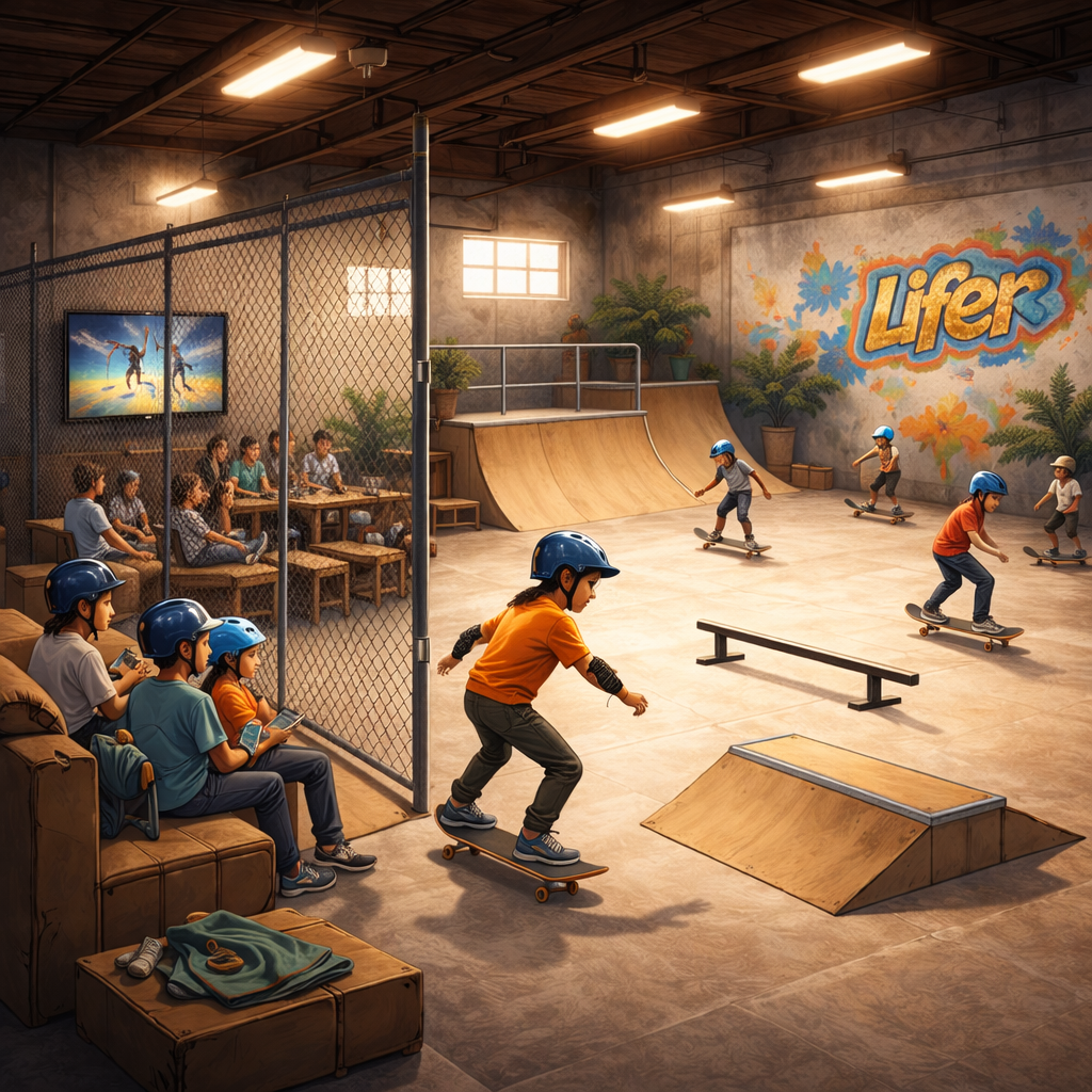 A supervised indoor space where kids and teens can skateboard, learn, and belong — regardless of skill level or background.